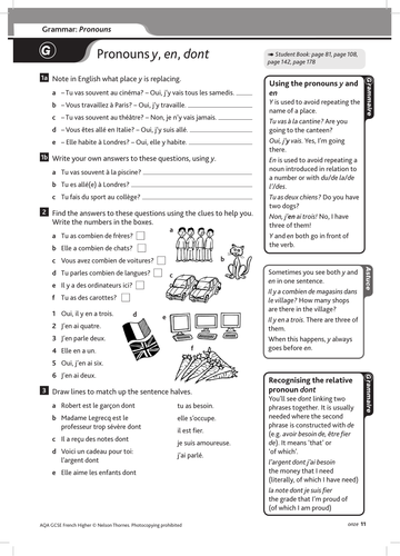Gcse French Grammar And Vocabulary Worksheets Teaching Resources